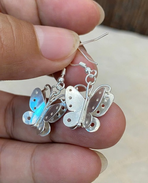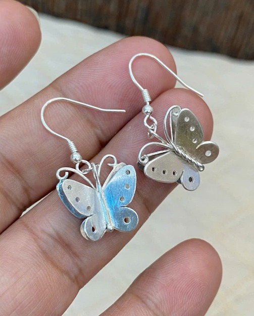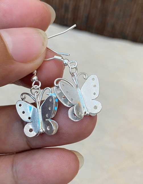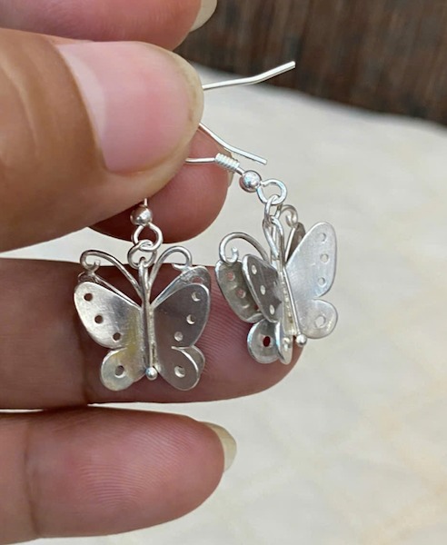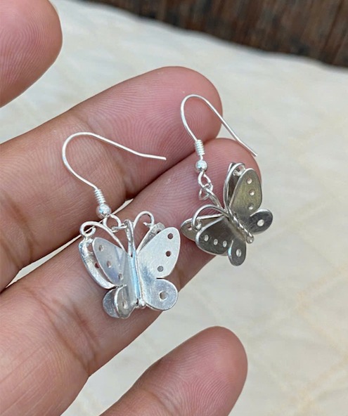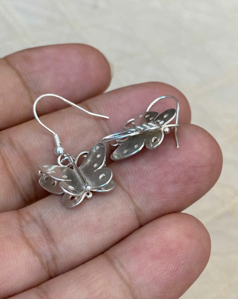 Đôi bông tai bạc dạng móc đúc hình con Bướm cực xinh, độc đáo