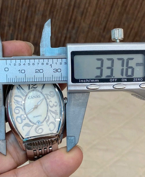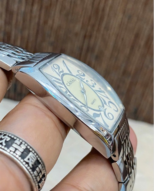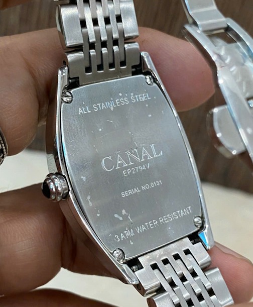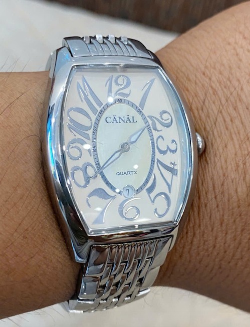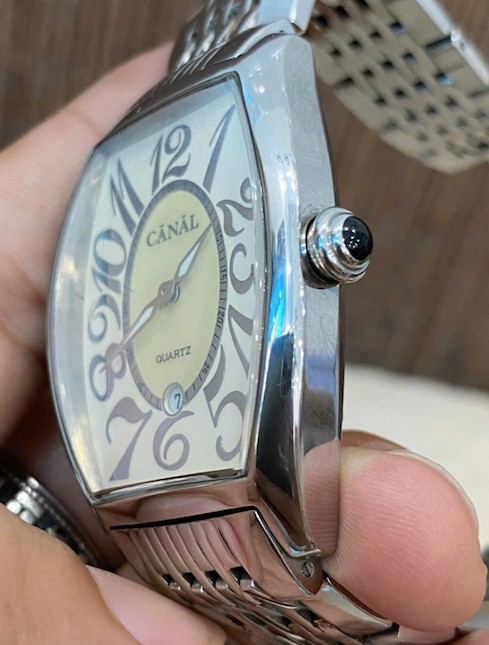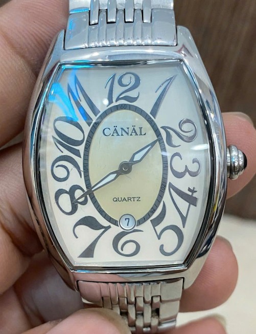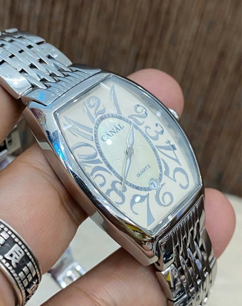 Canal - Chiếc đồng hồ unisex form trống, mặt xà cừ, vỏ thép đúc sáng bóng cực sang