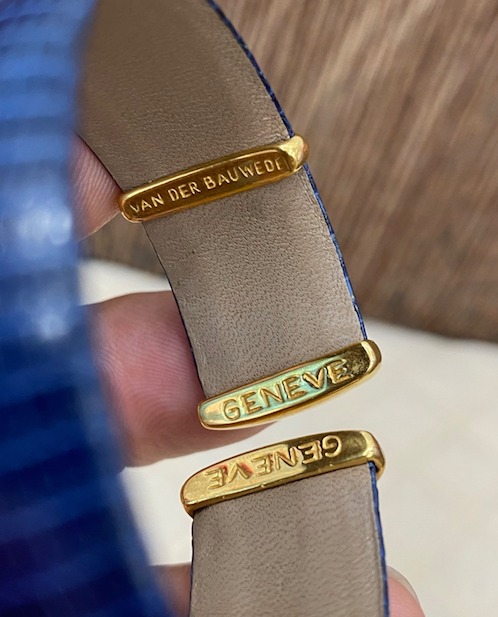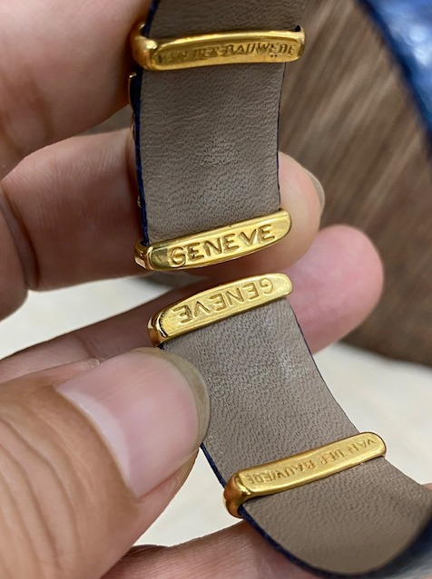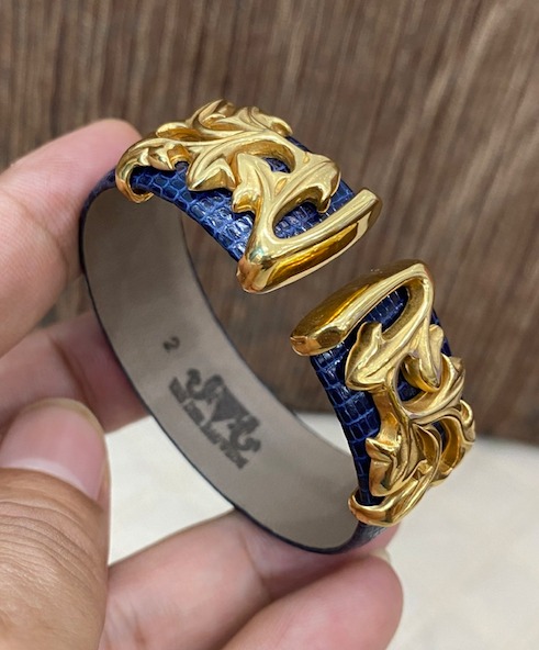 Vòng tay Nữ hàng hiệu Van Der Bauwede bọc da, khoen lắc kê vàng siêu sang