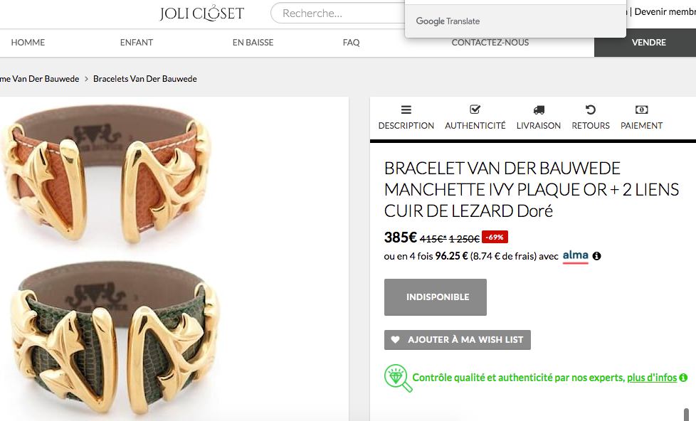 https://www.jolicloset.com/fr/marques-femme/van-der-bauwede/bijoux-femme/bracelets/bracelet-van-der-bauwede-manchette-ivy-plaque-or-2-liens-cuir-de-lezard--678780