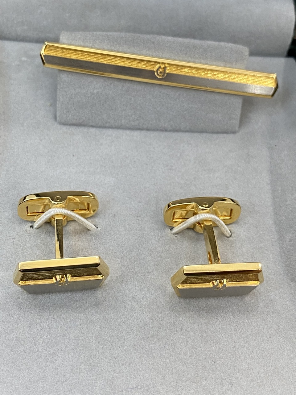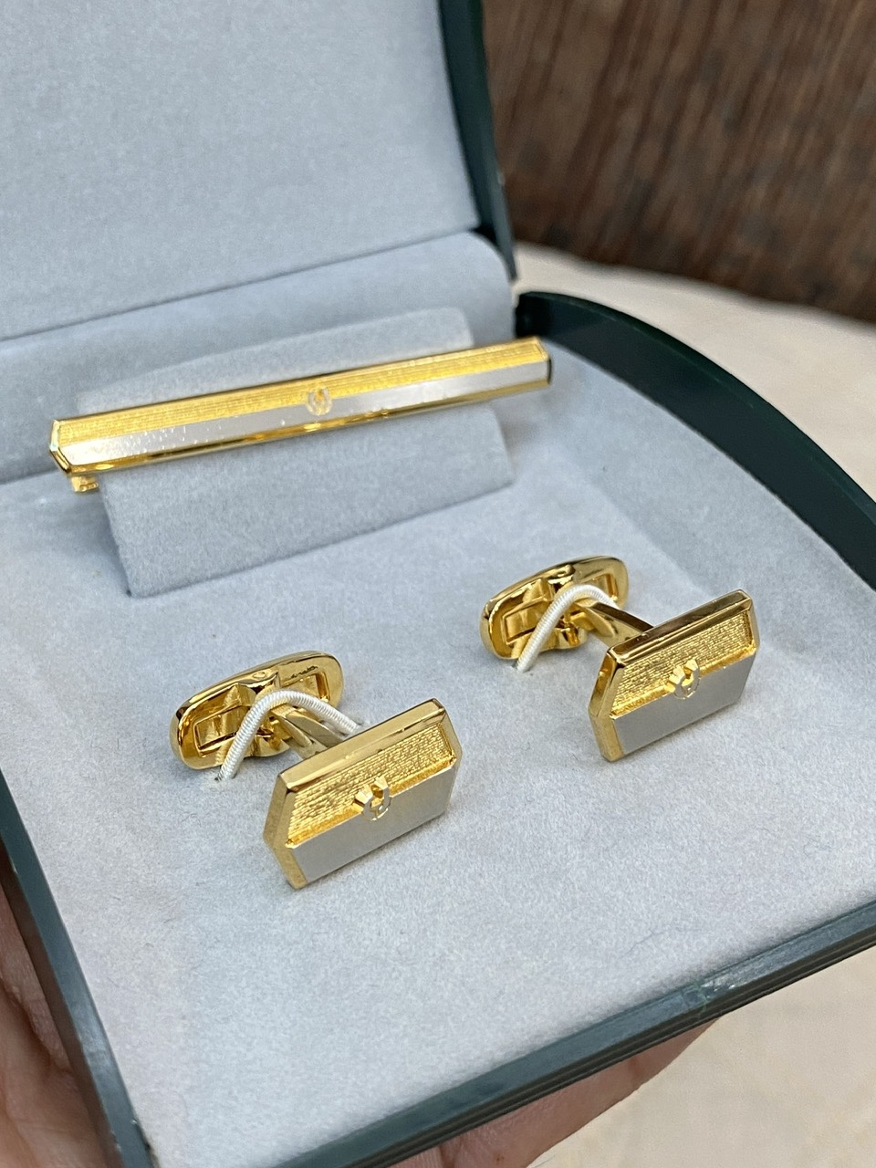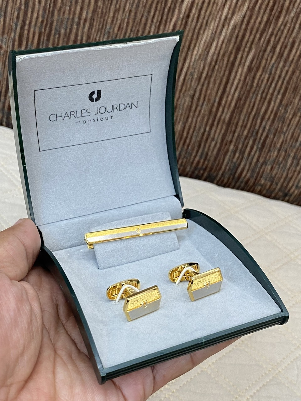 Charles Jourdan - Bộ măng sét & kẹp cà vạt hàng hiệu, mạ vàng, nguyên hộp cực sang