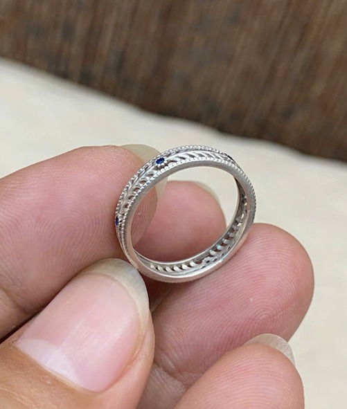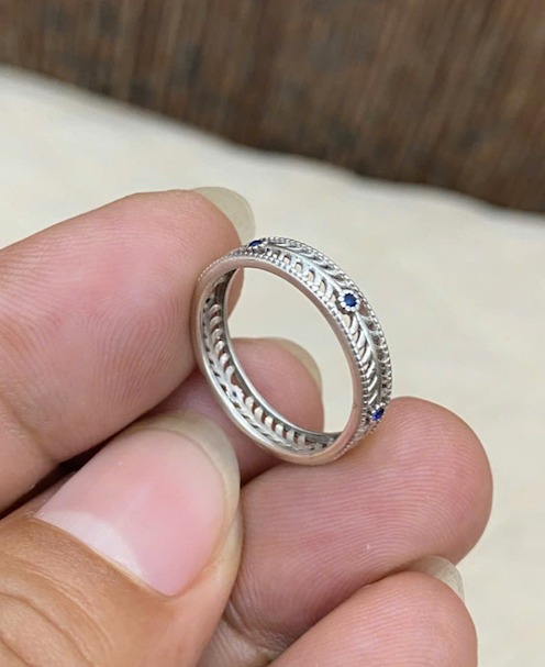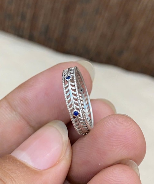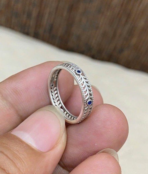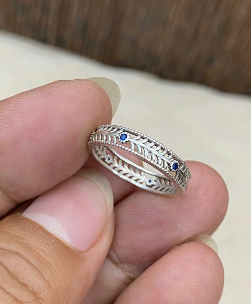Nhẫn bạc Nữ hoạ tiết hình xương cá đính 6 viên sapphire xanh đẹp & sang