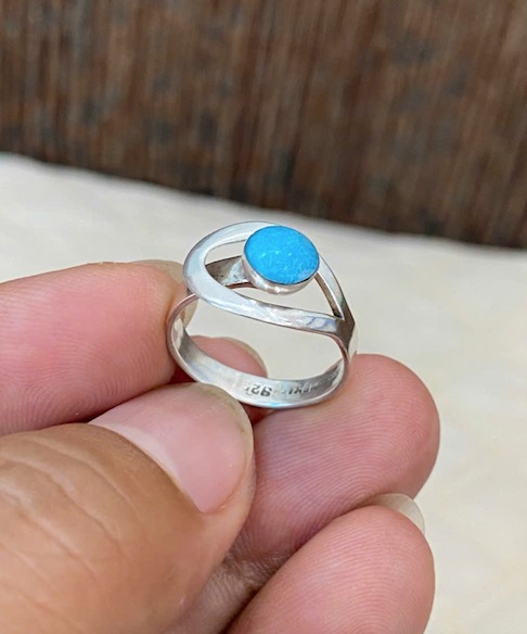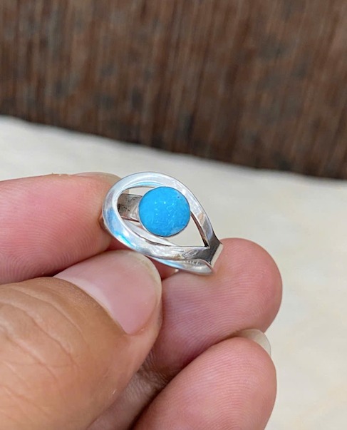 Nhẫn bạc Mexico đính Ngọc lam, form freesize, thiết kế độc đáo cực sang cho Nữ