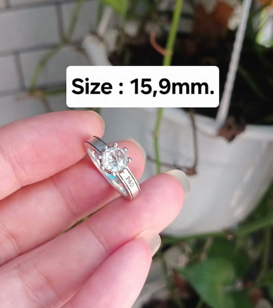 Nhẫn bạc nữ hiệu P&D, mặt đính viên CZ kiểu vương miện đẹp sang