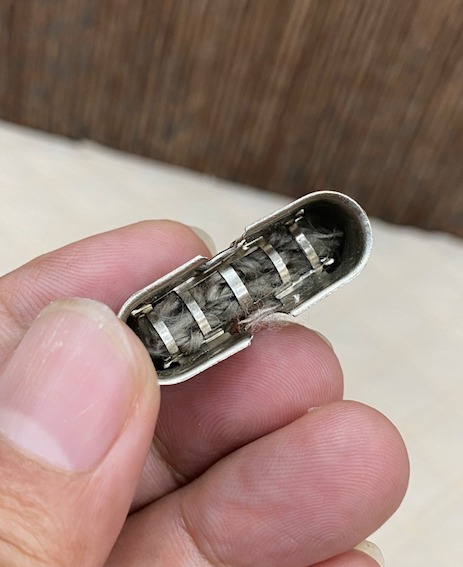 Bước 2: Châm lửa cho bật lửa sưởi bằng lửa mồi. Ban đầu để lửa tự cháy lớn cho đến khi tự tắt, lúc đó lửa đã chuyển sang cháy âm ỉ bên trong bật lửa.