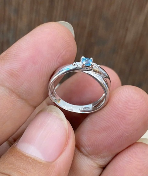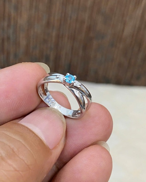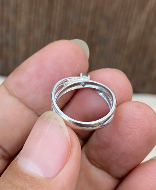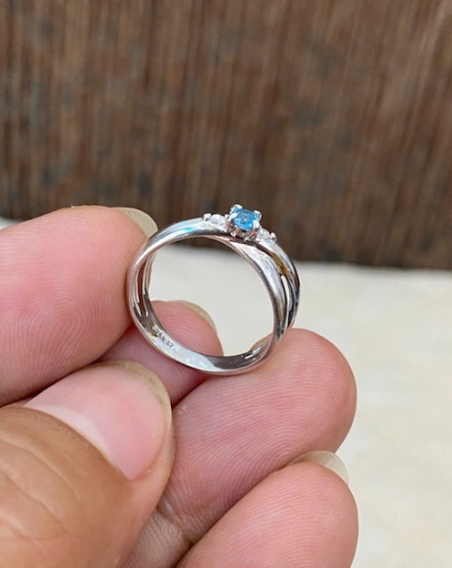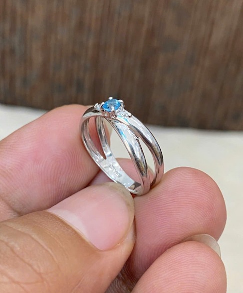 Nhẫn bạc Nữ đính đá xanh, form sang, sáng bóng như vàng trắng, lên tay cực xinh